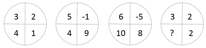 - 例5:(2022上海37%)根据下列图形上的数字规律,“?”处的数字应为______。